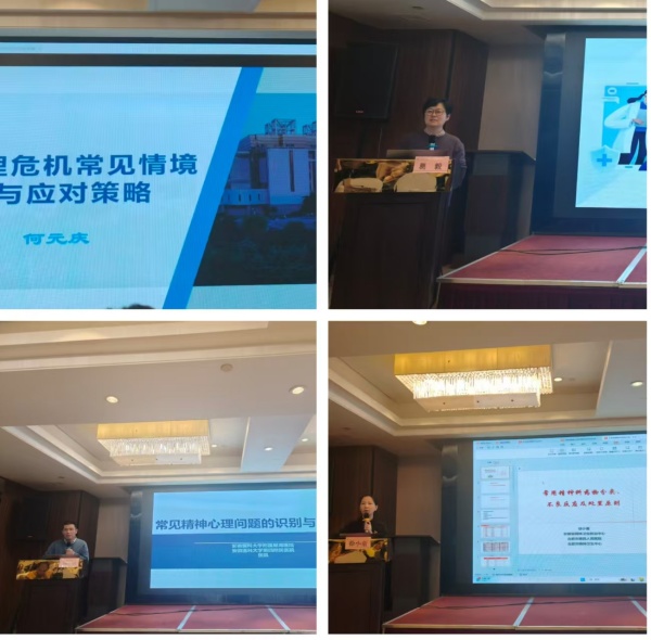 首先,合肥市第四人民医院党委委员、副院长罗蓓蓓,合肥市卫健委疾控处付随文出席仪式并讲话。紧接着,何元庆、葛毅等领域专家带来系列精彩讲座,主题涉及心理危机应对策略、评估与处置原则及精神科药物不良反应识别及处置等,培训内容兼具理论深度与实践指导性,搭建了“医教结合”专业交流与资源共享的优质平台,参训学员纷纷表示受益匪浅。